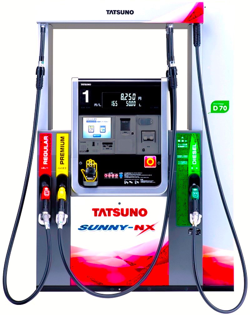 ガソリンスタンドなどで車両や容器へ給油する際に使用する機器。ガソリン用、灯油用などがあり、容量をデジタルなどで正確に表示・計算する。