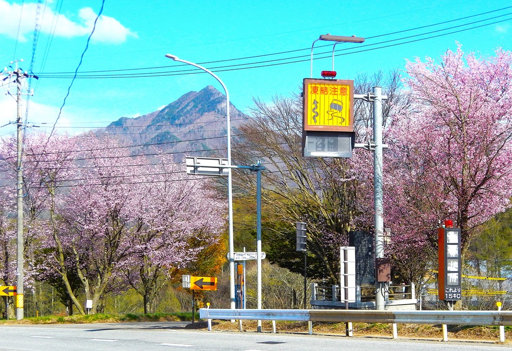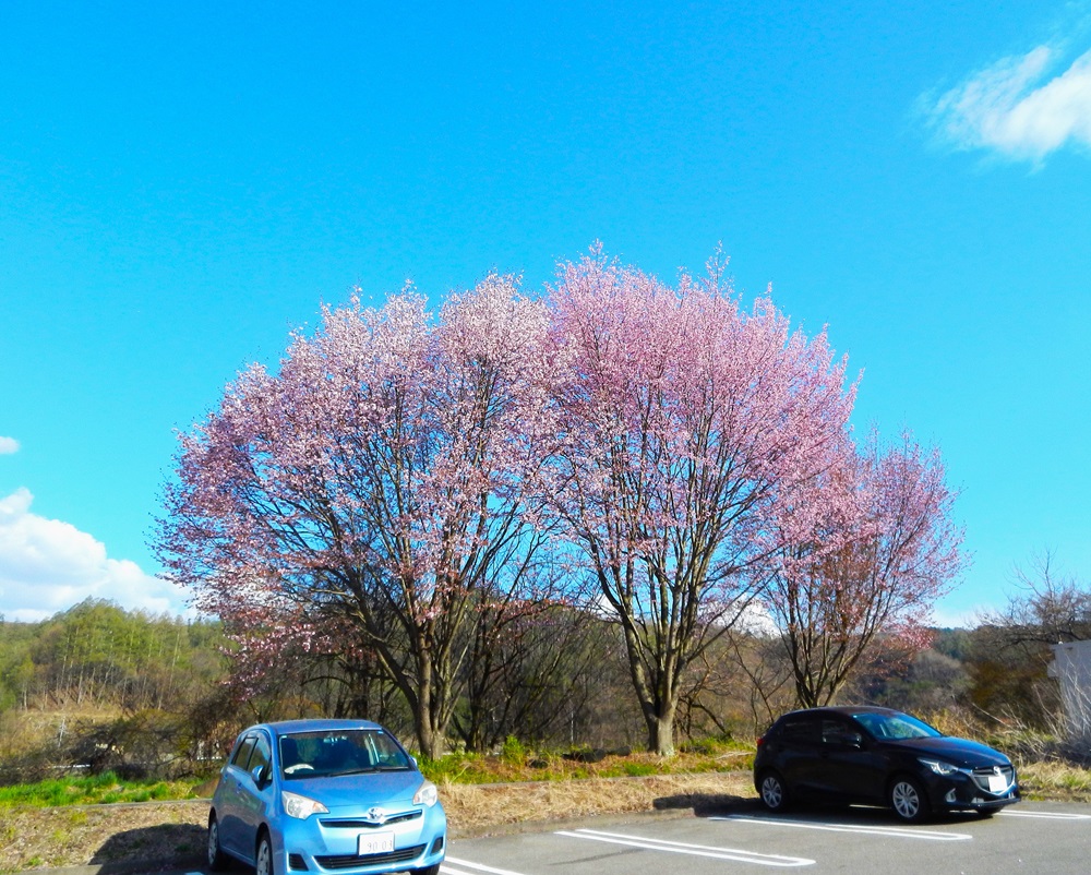 長野県南佐久郡南牧村の高原のある交差点付近のサクラの花のころ 4月20日午後に撮影