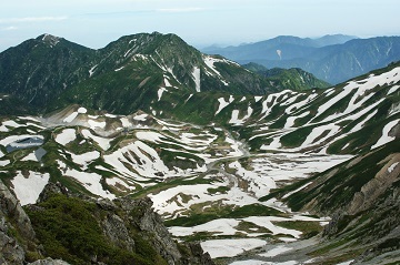 ミヤマキンバイが咲いていた場所から見下ろす室堂平