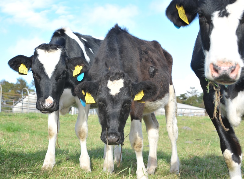 高原で放牧されているホルスタイン。カメラを構えると寄ってくる。八ヶ岳高原で2025年10月20日(月)撮影。