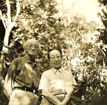 串田孫一・美枝子夫妻。自宅の庭にて。撮影:串田明緒