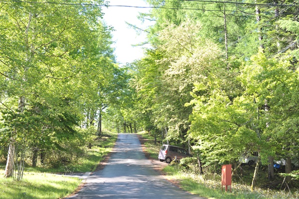 6月8日、晴れ。午前9時30分にベランダ(デッキ)に出る。空は緑。ミズナラ、シラカバ、ほかの落葉樹の新緑で覆われている。シラビソも新芽を出し、赤松も同じだ。だから晴れた日の空は緑。この敷地は500坪。角地にあって家を密集させないために向こう3方面は家が建たない緑地になっていることなどで、この面積を加えると3,000坪になる。