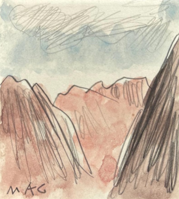 串田孫一作。見たことのある山の風景だが何山か正確には言えない。