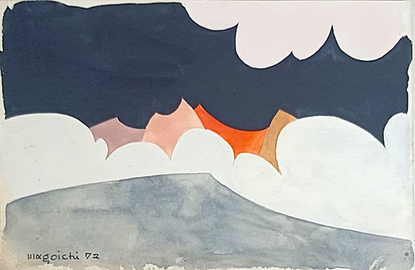 串田孫一作。見たことのある山の風景だが何山か正確には言えない。