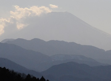 峠までの山道には日溜まりがある。野鳥が来そうな少し開けた日溜まりに腰掛けが据えてあり南に富士山が見えていた。富士を見ている間にツグミなどの野鳥が通り過ぎていった。小さな集団が水飲み場の上の茂み飛んできた。何だかわからないままに撮影したらメジロであった。メジロは留鳥であり人の近くで遊ぶ。その動作、その鳴き声はよく知っているのだがこのときには判らなかった。当てずっぽうにレンズを向けてシャッターを切ったら写っていたのはメジロであった。おあつらえ向きに如何にもメジロというように二羽が隣り合っていた。