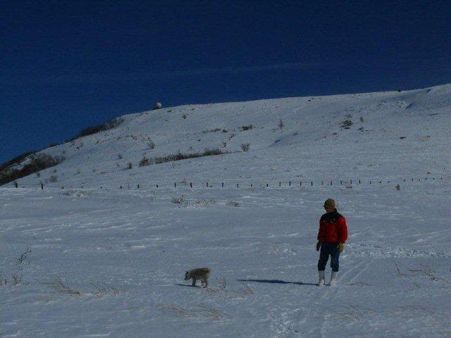 写真は生後90日の紀州犬メス犬のチビと車山高原で遊ぶ。チビは雪と比べると白くはありません。
