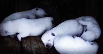 紀州犬白毛、オス、メス、生後3日の写真です。