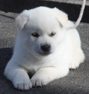 電子メールは次にお願いします e-mail: syokota@peach.ocn.ne.jp 【紀州犬の子犬情報】 (下をクリックすると詳細をご覧いただけます) ○紀州犬の子犬、胡麻毛、メス、2019年8月26日生まれ。横田俊英携帯070-7490-9944。 2020年5月5日に撮影−生後8カ月と2週間−紀州犬、胡麻毛、メス。動画。YouTube。 ![]() 山梨県の富士山麓から流れです道志川が津久井ダムに落ちる付近で撮影しました。川の流れの音が大きく録音されております。晴れた日でしたが時折雲がかかりました。 犬の体高は肩甲骨のところで測定します。この紀州犬、胡麻毛、メスの体高は2020年5月5日の計測で42cmでした。 柴犬の体高は平均的に、雄は38cmから41cm。雌は35cmから38cmの間です。中型日本犬の紀州犬、四国犬、甲斐犬、北海道犬の体高 雄の標準体高は52cm、雌は49cmです。 平均的に、雄は49cmから55cm、雌は46cmから49cmの間です。 体高の伸びを含めて成長が緩かったこの犬はこのところ眼に見えて大きくなっています。紀州犬の胡麻毛は世間には知られていないのですが少なからずおります。戦前は胡麻毛の紀州犬のほうが多かったのです。毛の色が白になるとあまりにも単純になってしまいます。胡麻毛の紀州犬は白に近い灰色から黒に近い色までさまざまおります。茶色の毛のことを赤とか丹といいます。灰色と黒の毛とともに丹があわさります。 この胡麻毛は現在のところ単純な胡麻毛です。柴犬の赤毛と比較すると胡麻毛のようすが灰色にもみえます。柴犬は紀州犬をそのまま縮小した体型ではありません。紀州犬の体型の伸びやかさはすぐれた特質であるように思われます。最も犬種団体によって柴犬の体型は違いますから一概には申し上げられません。 白毛の紀州犬は全身が真っ白かというとそうではありません。黒い紙に白い絵の具で犬の形を書いたのが紀州犬の白毛ではないのです。耳先、背筋、尾の先後、肢の裏側などは茶色の毛が混じります。程度はまちまちですが紀州犬の白毛とはそのようなことなのです。 背丈が伸びるのと同時に胸部と腰部がしっかりしました。均整がとれていてとても美しい姿です。口吻部分は日本犬は子犬のころには黒いマスクがあります。この胡麻毛の犬はマスクが薄れました。上顎のマスクは薄れましたが下顎のマスクは残っています。毛の色も黒だったのが茶色の丹に移行してさらに灰色に見えるようすです。現在の状態は胡麻毛です。黒が強ければ黒胡麻です。黒の毛が少なくて茶色に見えれば赤毛です。赤毛と黒毛がうんと少なければ灰色です。灰胡麻になります。山間地の泥水をあびて乾いた状態をぬた毛といいます。灰胡麻とぬた毛の区別があるかどうか知りません。 胡麻毛の紀州犬を飼っていると子犬のときに真っ黒だったのがどのように変化していくかを楽しむことができます。紀州犬の胡麻毛は渋い毛色です。渋好みの人に似合う紀州犬の胡麻毛です。 2020年4月11日に撮影−生後7カ月と7日−で背丈は39cmで柴犬のオスのサイズの紀州犬、胡麻毛。動画。YouTube。 (タイトル及び写真をクリックすると動画を再生できます)https://youtu.be/I6I1T85bw8Y ![]() 南アルプスが見える甲府盆地の宿の庭で撮影してました。車酔いをしません。 2020年4月4日に撮影−生後7カ月で背丈は38cmの紀州犬、胡麻毛、メスと生後90日の紀州犬の子犬、白、オス。動画。YouTube。 (タイトル及び写真をクリックすると動画を再生できます)https://youtu.be/CVWPympgNLc ![]() 八ヶ岳がよく見える場所で撮影しました。 小さな紀州犬のメスです。胡麻毛であります。歯が全部そろっていて綺麗な歯並びです。口吻は細いのでメスっぽいですがもう少し太くてもよいと思ってっています。食事のを内容を変えました。豚肉を煮てランミールというドッグフードに混ぜています。1週間ほど与えたら身体が肥えました。胸の幅がでました。この胡麻毛のメス犬は賢いのです。車のケージに入るように促すと小さなケージに収まるように身体を縮めます。見た目にも可愛そうだから大きなケージで旅行にでるようにしました。知らない人が家に近づくとワンワンと吠えます。知った人だと吠えません。 生後90日の紀州犬の子犬、白、オスは、四角い口吻にみえていたのが丸くなりました。巻きが強い尾は少し立ち上がってきました。生後60日の子犬と比べると頭が何倍もの大きさにみえます。口を開けると乳歯です。前日に胡麻と噛み合ったら下顎の二本の門歯の乳歯が抜けておりました。この日、牛皮でできた骨っこを咬ましていたら上顎の二本の門歯も取れました。頭も形も大きな犬ですが生後90日であることは乳歯で証明します。歯は子犬の月齢を良く物語ります。舌班はありません。眼の沈みが欲しい感じです。目の色ももう少し黒くあって欲しい。眼淵の色素が甘いので目の色を淡くみせているのかも知れません。散歩をしているときに見える肛門の色素は肌色です。肛門の色も黒い方が良い。上の好ましくない状態の正反対にあるのが胡麻毛の紀州犬の7カ月です。こ