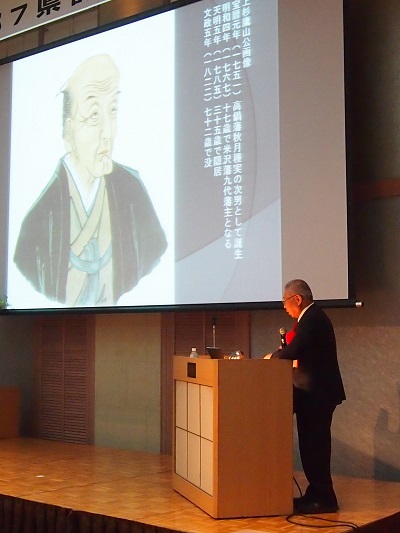 講演のようす。講師は久能山東照宮宮司の落合偉洲氏。